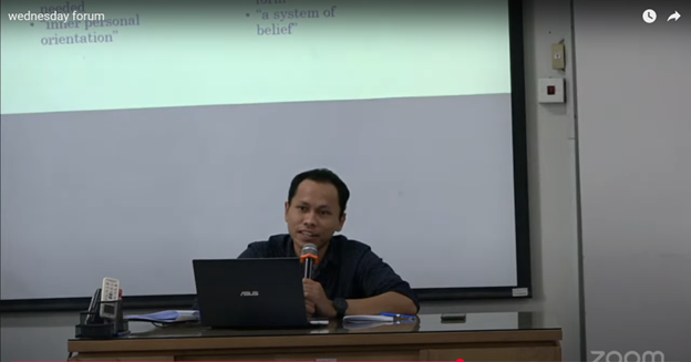 Kali ini, Wednesday Forum diselenggarakan pada Rabu (28/05) di Ruang Kelas Lantai 3, Gedung Sekolah Pascasarjana UGM menghadirkan Azis Anwar Fachrudin sebagai pembicara utama. Aziz merupakan alumni CRCS UGM yang meraih gelar MA pada tahun 2016. Setelah menyelesaikan studinya, ia sempat bergabung sebagai staf di CRCS hingga pertengahan 2017, sebelum melanjutkan pendidikan doktoral di Amerika Serikat dengan beasiswa Fulbright. Saat ini, ia tercatat sebagai kandidat PhD dalam bidang studi agama di School of Historical, Philosophical, and Religious Studies (SHPRS), Arizona State University.