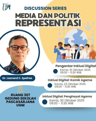 Yogyakarta, 23 Oktober 2025 — Program Studi Kajian Budaya dan Media (KBM), Sekolah Pascasarjana Universitas Gadjah Mada, mengadakan diskusi bertema “Inklusi Digital: Komik Agama” sebagai bagian dari rangkaian Discussion Series Media dan Politik Representasi. Kegiatan yang berlangsung di Ruang 307 Gedung Sekolah Pascasarjana UGM ini menghadirkan Dr. Leonard C. Epafras sebagai narasumber utama.
