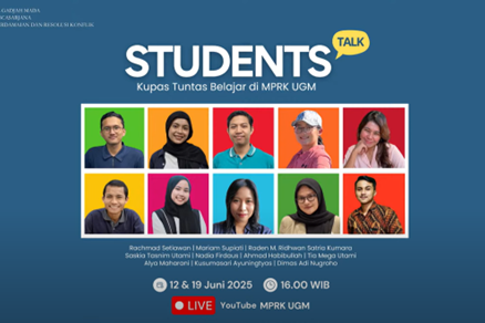 Yogyakarta, June 20th 2025 – The Peace and Conflict Resolution Master Program in (MPRK) at the Graduate School of Universitas Gadjah Mada (UGM) is more than academic space; it is a platform that changes perspectives and “humanizes” its students. This profound insight was revealed during an online talk show series titled “MPRK Talks”, held throughout June 2025.