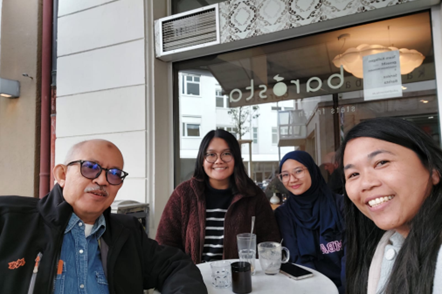 Valuable insights into the study experience at UASO were gained by Dr. Wahyu Supartono through an informal meeting with UGM-UASO joint-degree students, namely Arthia and Filzda, and also a Muenster University alumna who now works at the International Office UASO, Gita Lestari. This relaxed discussion covered various academic and non-academic aspects of studying in Osnabrueck. Information regarding accommodation, transportation, and significant differences in the thesis writing process in the MBA UASO program were interesting topics. MBA students at UASO have a relatively short period of four months to complete their thesis with an emphasis on secondary data and a different examination process compared to the system in Indonesia.