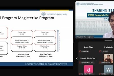 Yogyakarta, 28th April 2025 — The Graduate School of Universitas Gadjah Mada (SPs UGM) held the 2025 New Student Admission Sharing Session, organized by the Directorate of Education and Teaching, with online Zoom Meeting. This event aimed to provide prospective students with comprehensive information regarding the admission process, available study programs, and the academic environment at SPs UGM.