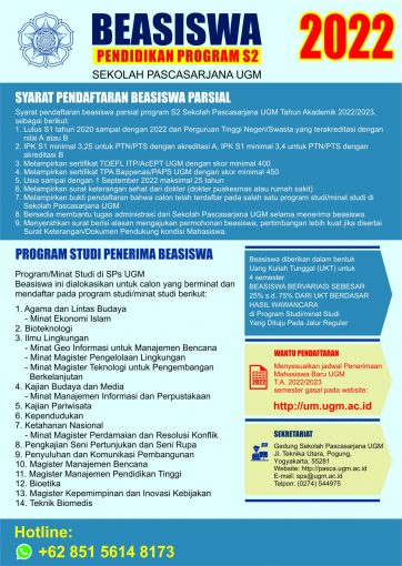 UGM Graduate School Scholarships for the 2022/2023 Scholarships 31 May 2022, 08.22 Oleh: muthia.nur.a 0 Click here to download the form. Deadline on June 14th, 2022